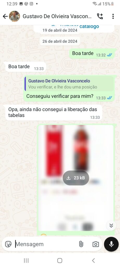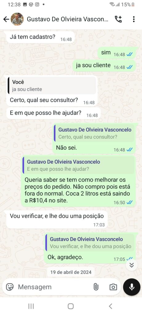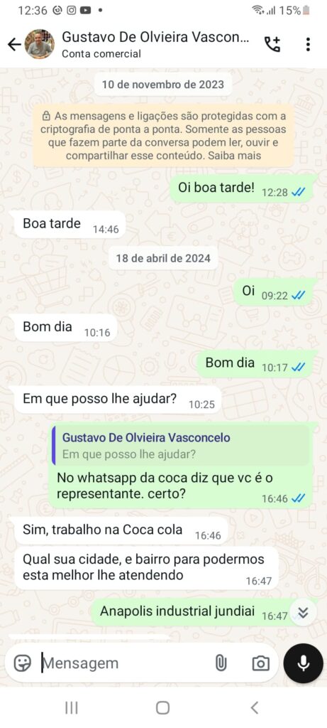Conversas whatsapp com o supervisor da Coca-Cola.